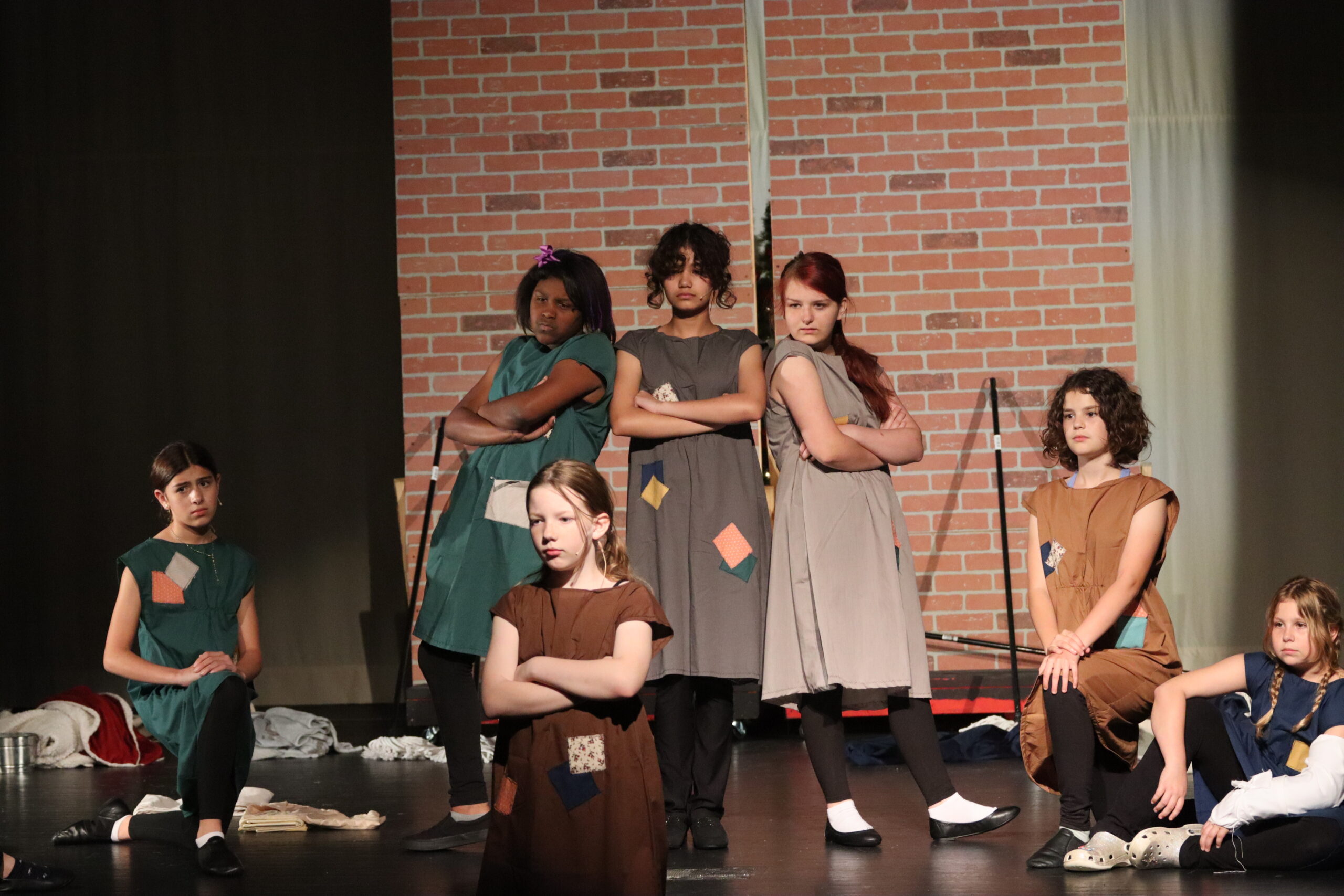 KCTP is blessed with a talented pool of actors of all ages! One of the most challenging parts of running a community theatre is that there is almost never a show with roles for every single age group. When picking our 2024 show, we knew that our KCTP kids had been waiting a while for another star vehicle, and we just HAD to deliver! With 13 children and 6 teens, ANNIE was absolutely PACKED with young talent! This wonderful show also represented a first for KCTP. After 6 years of beautiful weather in the park on our show days, we finally had one get rained out. Thankfully, Kennedale ISD came to the rescue at the last minute and allowed us to use the Wildcat Auditorium to perform our musical indoors! Thank you, KISD, for allowing these talented kids an opportunity to show their families and friends everything they had worked so hard on!
